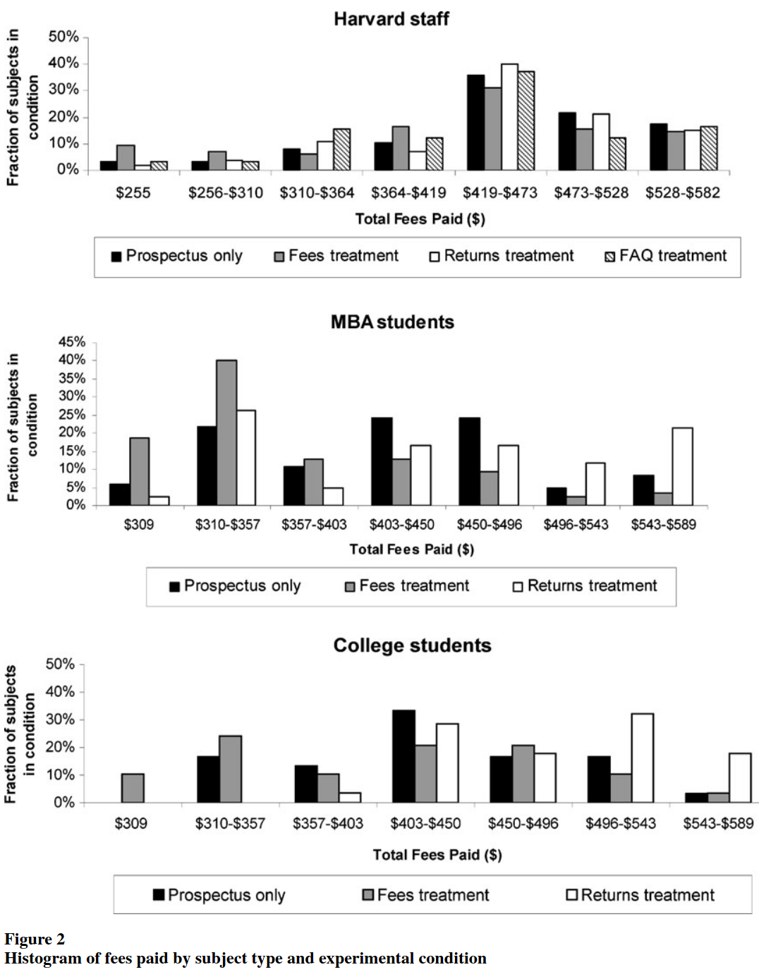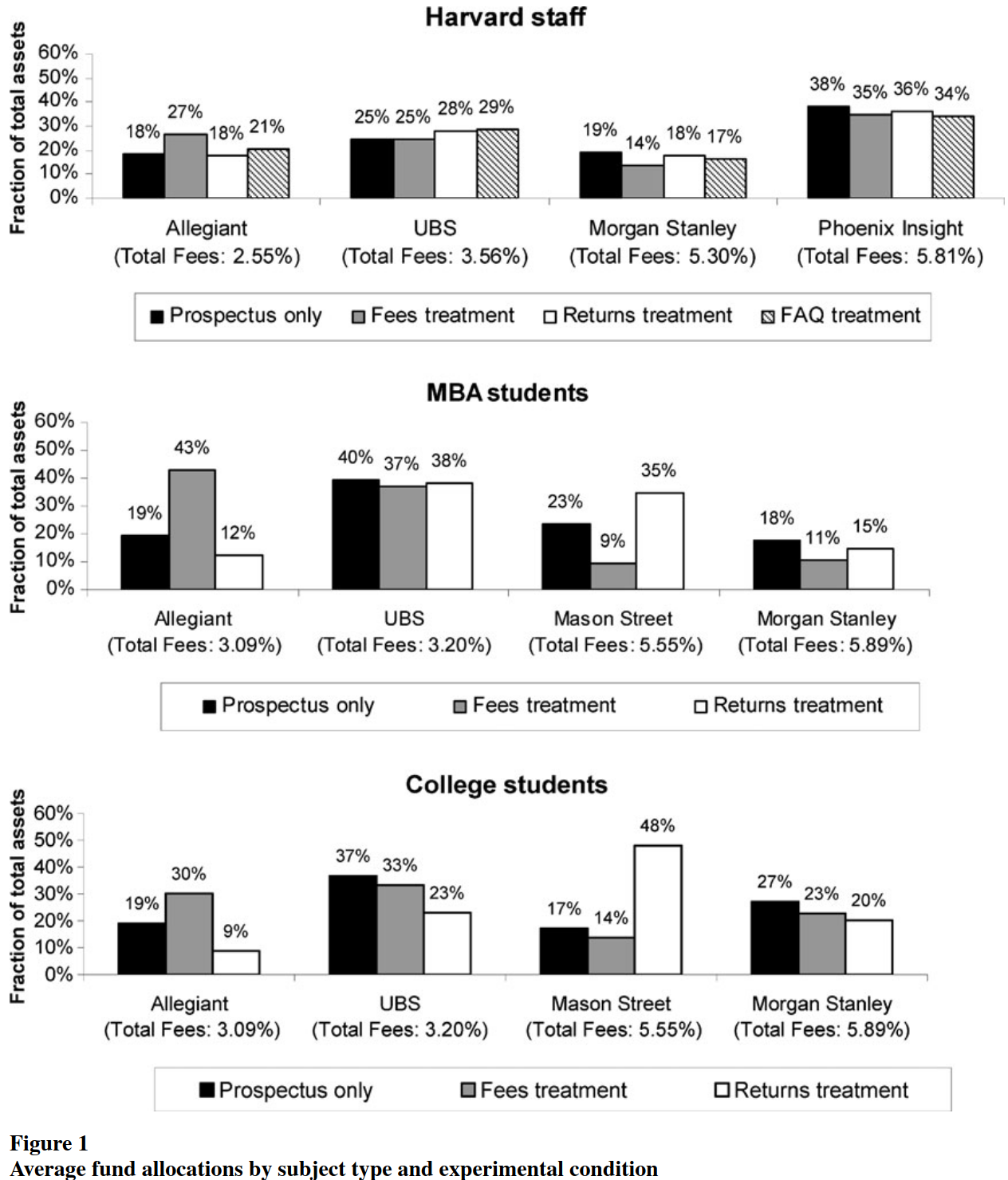 Objetivo: observar se participantes escolhem fundos de menor taxa (fee) quando outras características são idênticas.