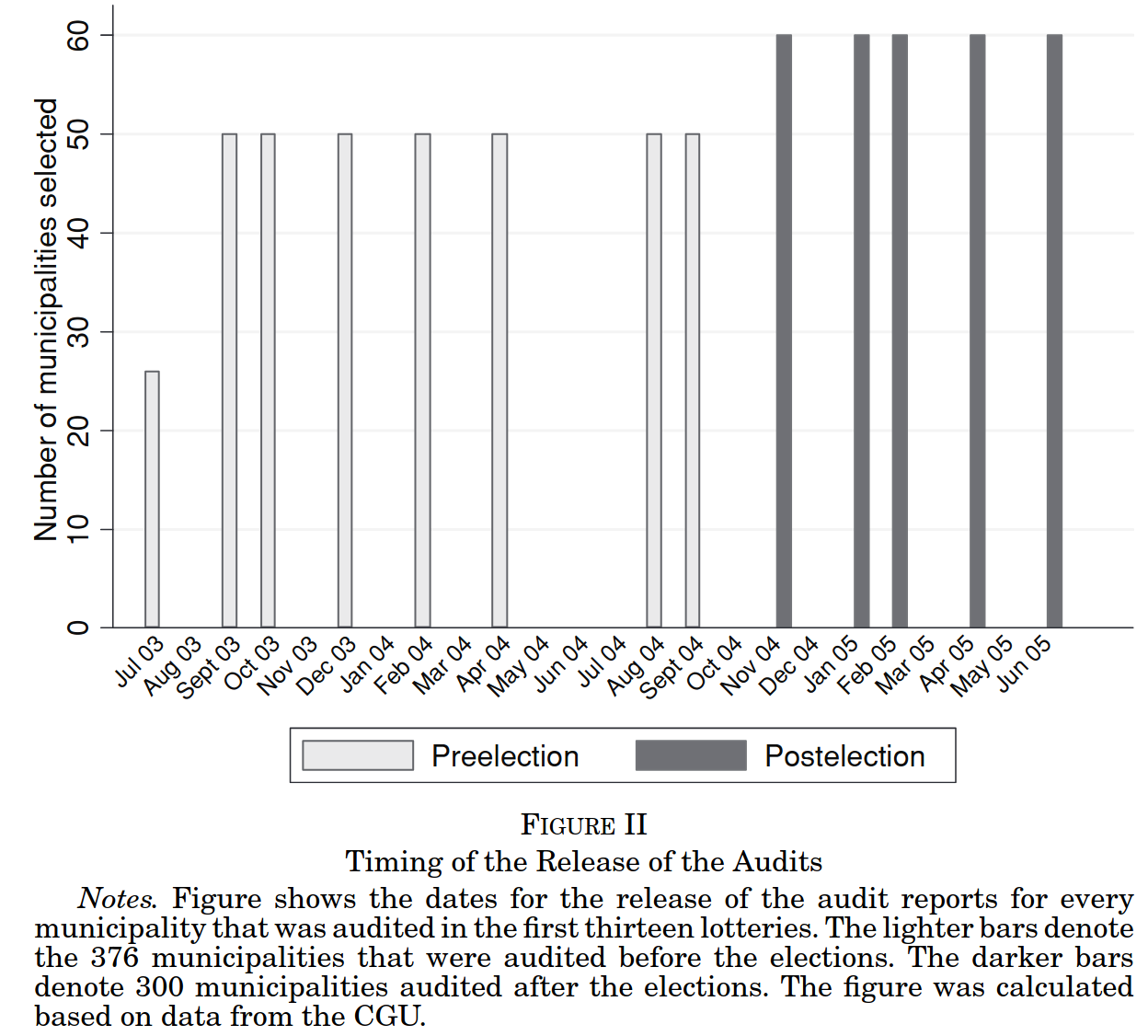Alternativa dos autores: explorar o sorteio aleatório do programa de auditoria da CGU e o timing das eleições.