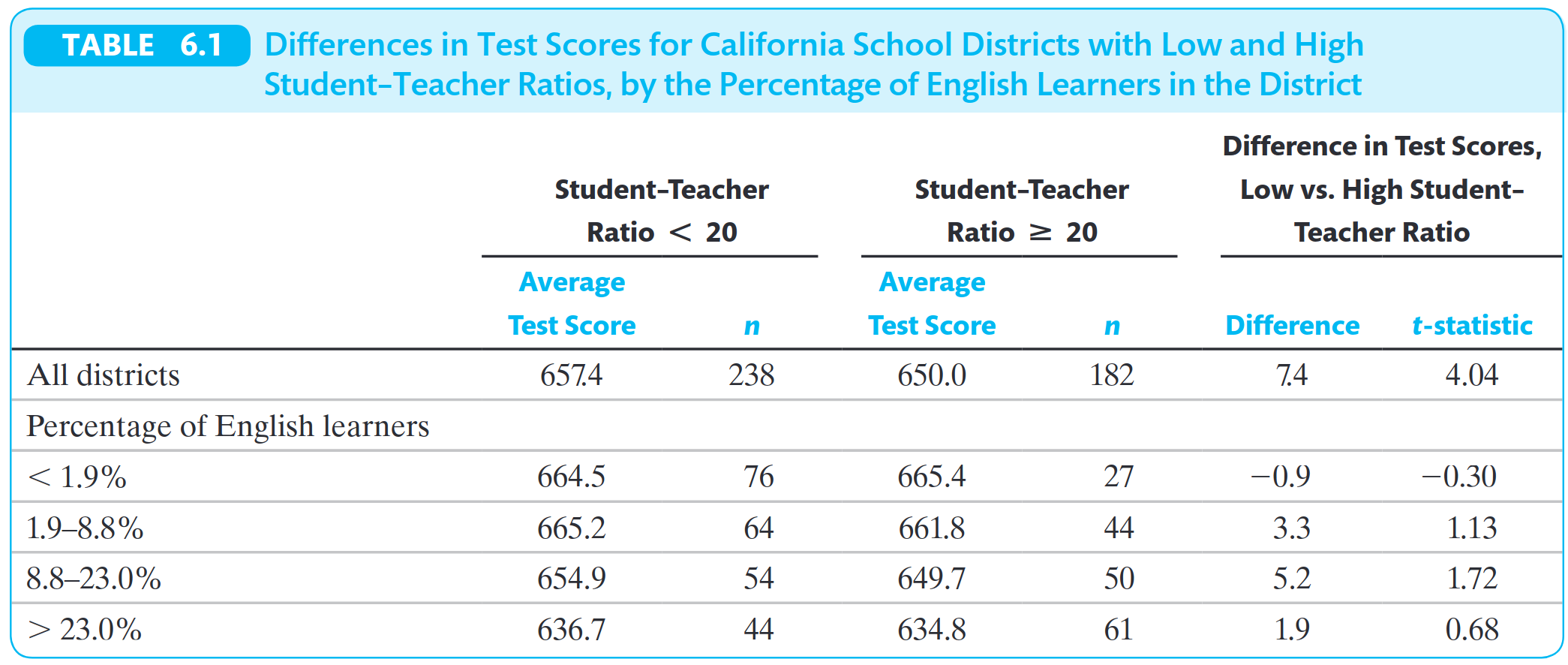 \[\hat{TestScore_i} = \beta_0 + \beta_1 STR_i +\beta_2 PctEL_i + \beta_3 FracEL_i+u_i\]